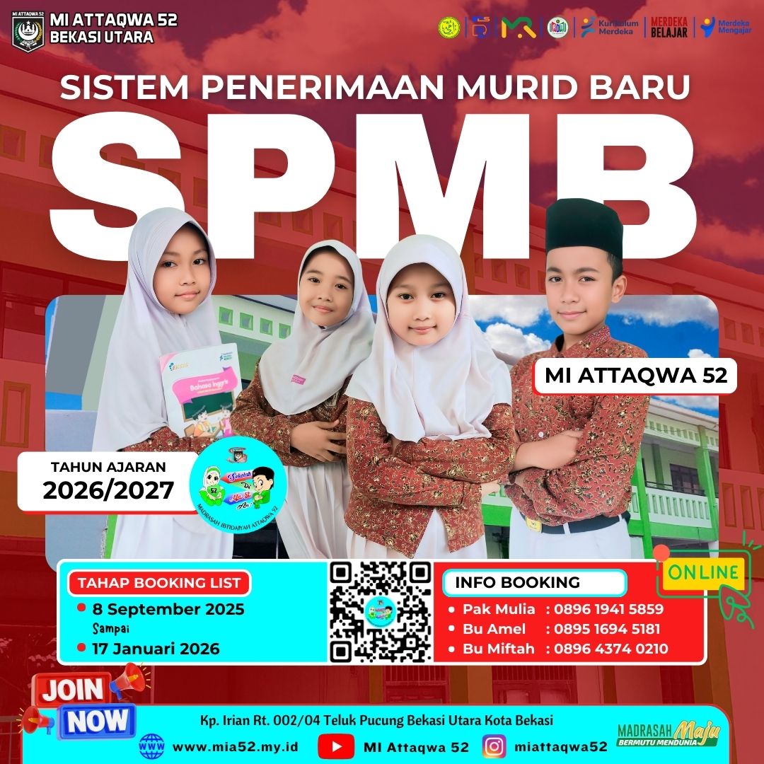 Kunjungi Website SPMB MI Attaqwa 52 untuk Informasi Kuota Penerimaan